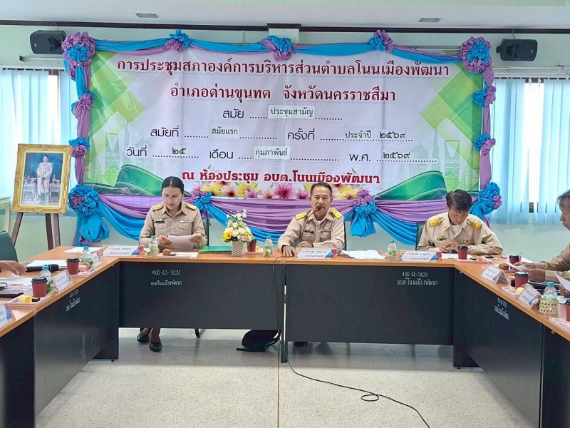 ประชุมสภาองค์การบริหารส่วนตำบลโนนเมืองพัฒนา สมัยประชุมสามัญ สมัยที่ 1 ครั้งที่ 1/2569 ประจำปี พ.ศ.2569  วันที่ 25 กุมภาพันธ์  2569   ณ ห่้องประชุมชั้น 2 องค์การบริหารส่วนตำบลโนนเมืองพัฒนา อำเภอด่านขุนทด จังหวัดนครราชสีมา