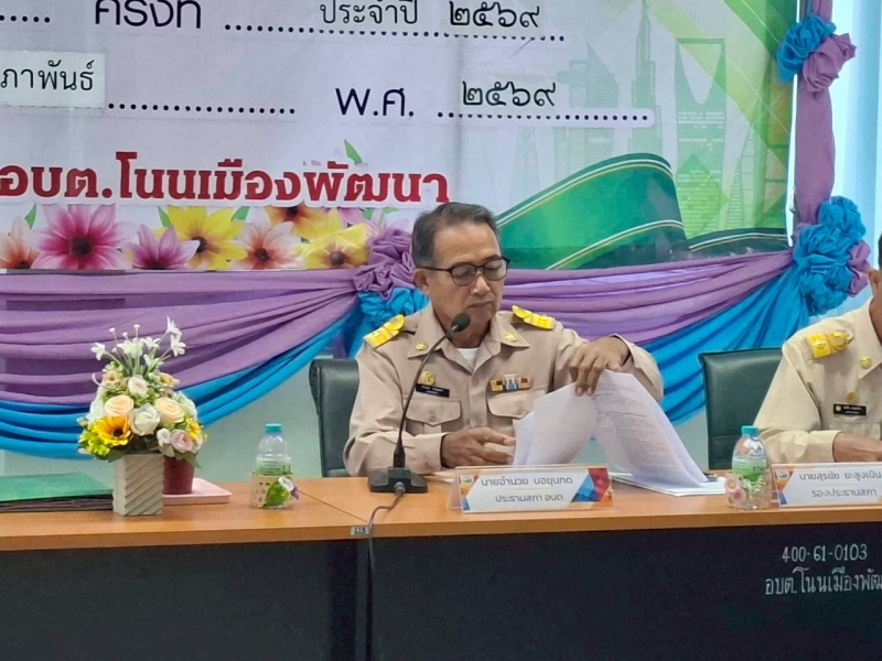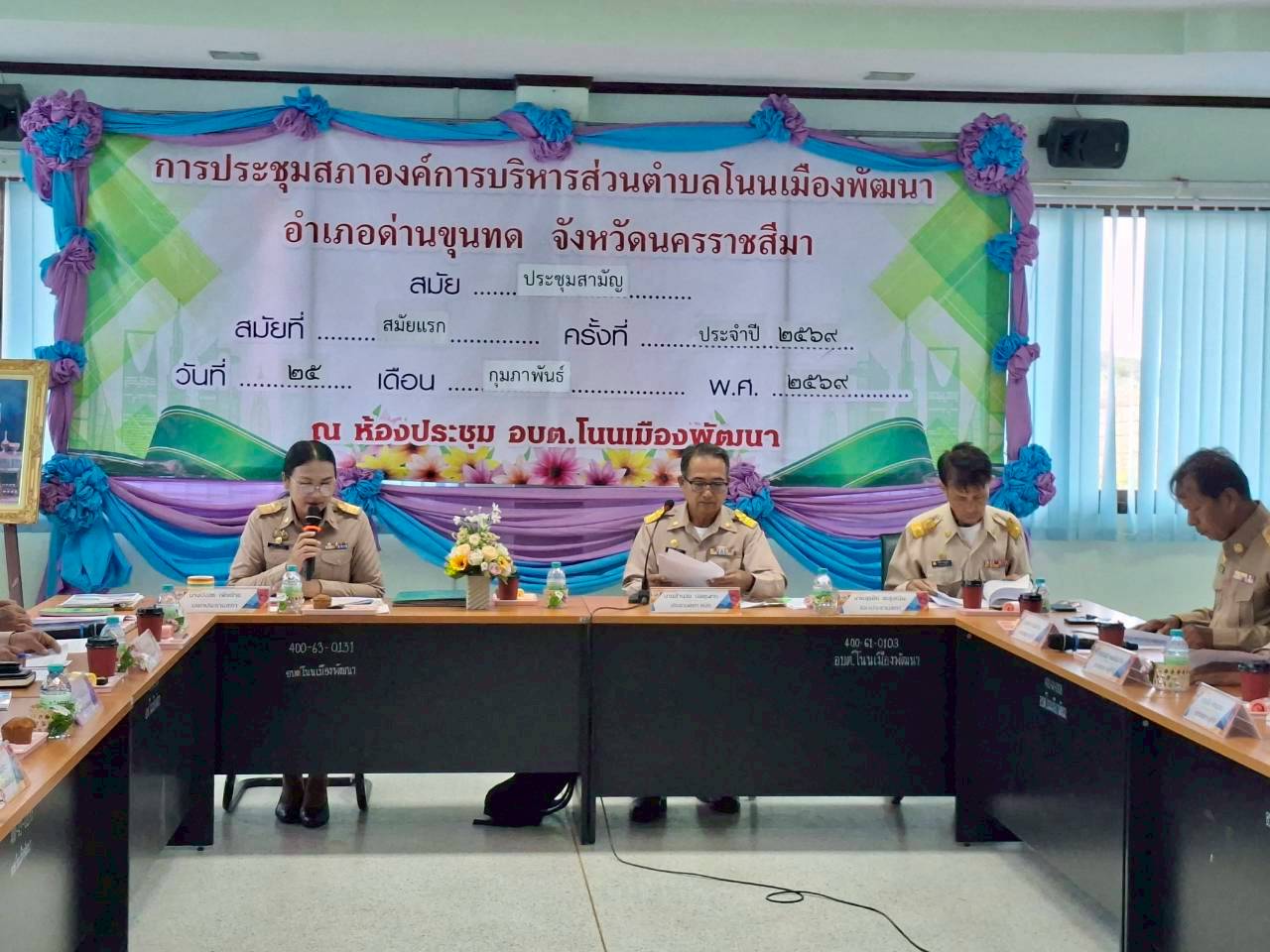 ประชุมสภาองค์การบริหารส่วนตำบลโนนเมืองพัฒนา สมัยประชุมสามัญ สมัยที่ 1 ครั้งที่ 1/2569 ประจำปี พ.ศ.2569  วันที่ 25 กุมภาพันธ์  2569   ณ ห่้องประชุมชั้น 2 องค์การบริหารส่วนตำบลโนนเมืองพัฒนา อำเภอด่านขุนทด จังหวัดนครราชสีมา